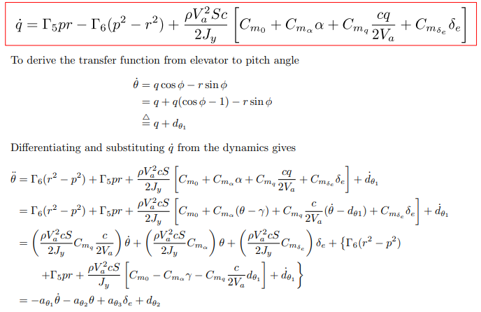 Deriving the transfer function from elevator to pitch angle