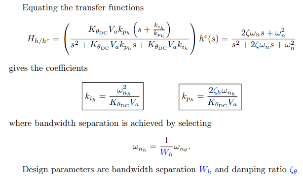 - - Bandwidth separation between pitch and altitude loops.