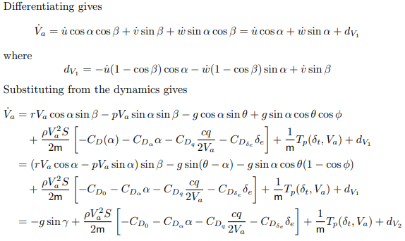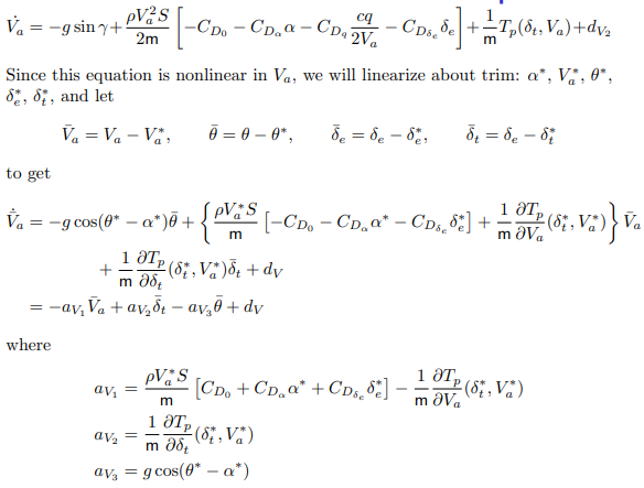 Both pitch angle and throttle strongly affect airspeed. We wish to derive this relationship.