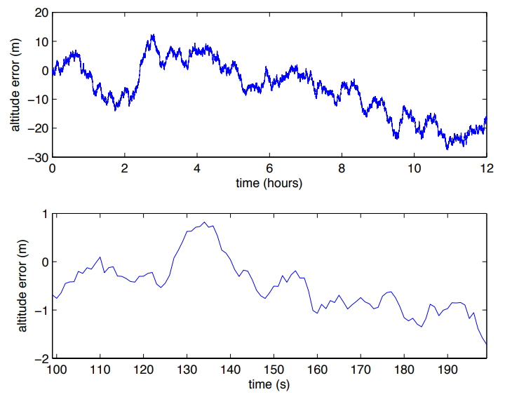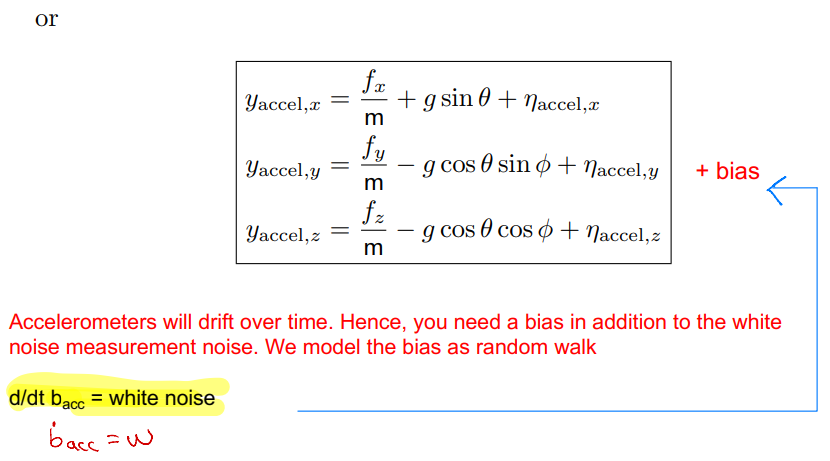 The manufacturing process implies that rate gyros will have a drift term, as well as zero mean Gaussian noise: