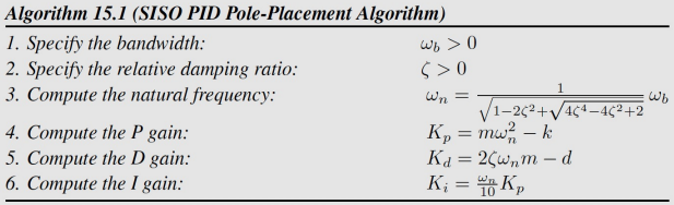 To determine the damping in these states we need to treat each of them as a pure mass-damper system. Linear damping for such a system can be found by specifying the time constant T > 0 corresponding to: