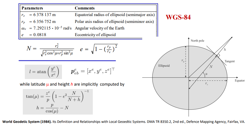 Satellite navigation system measurements are given in the ECEF frame, not very useful. It is then beneficial to express it in terms of longitude, latitude and height.